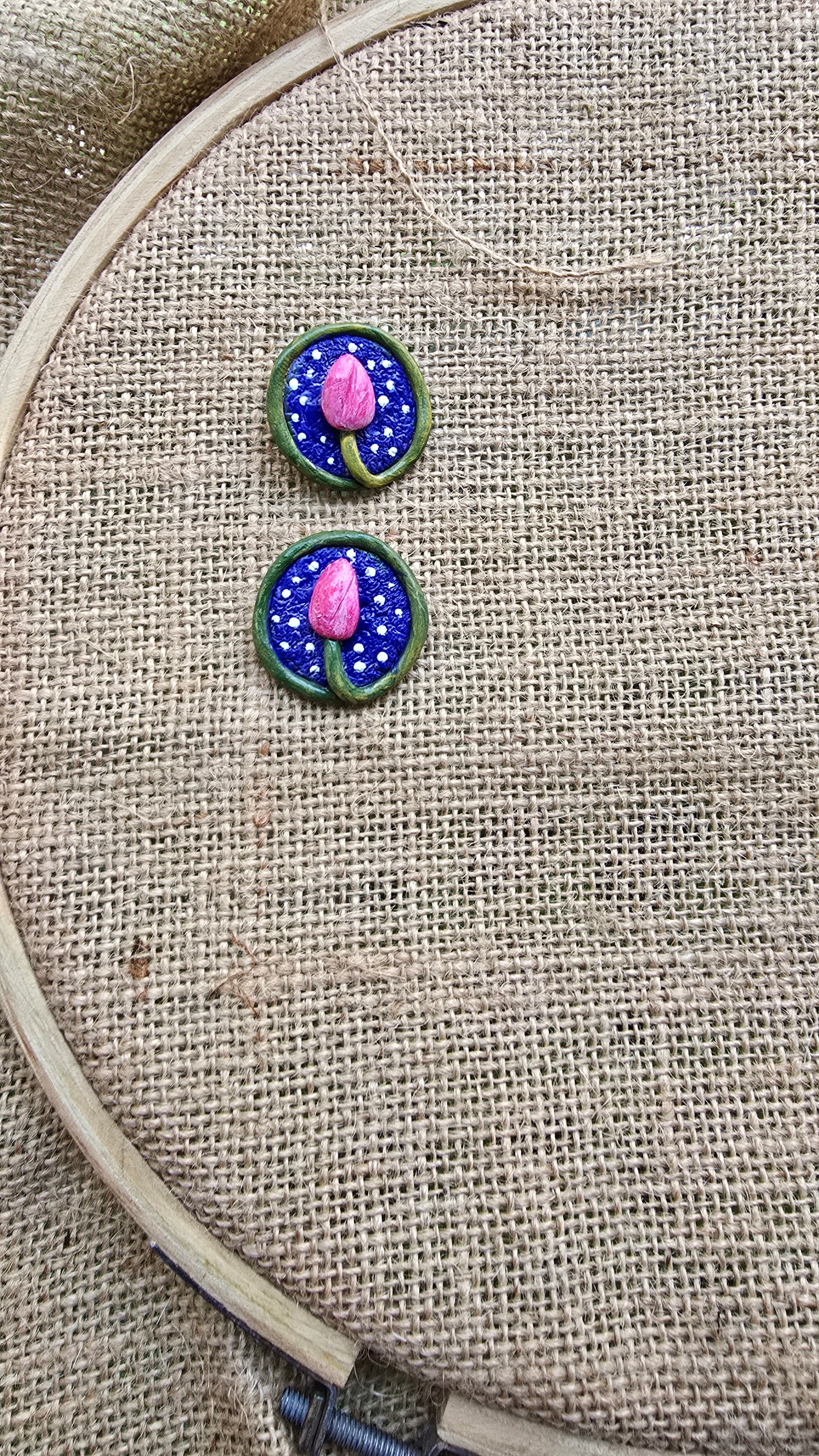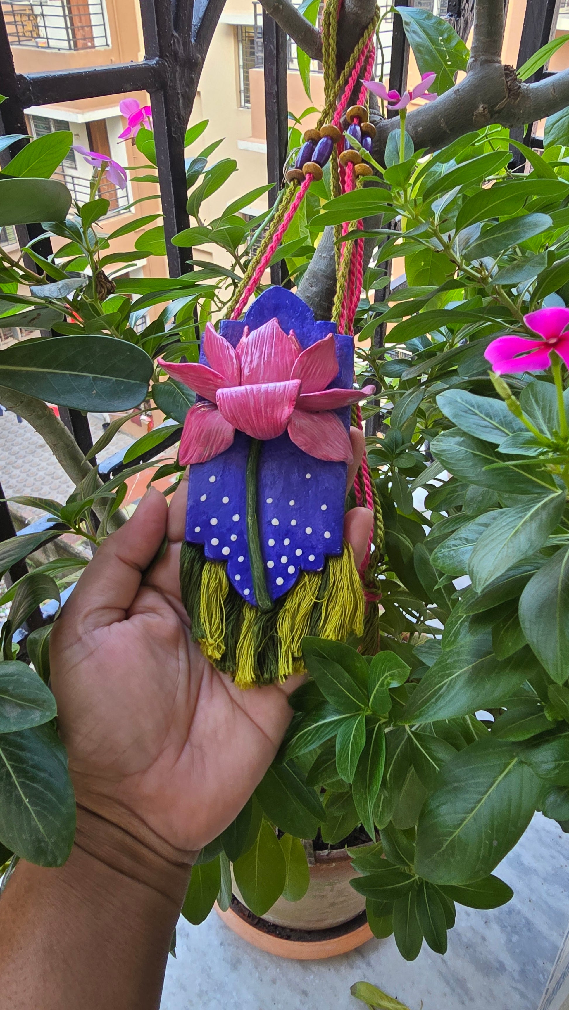 This stunning Clay Pink Lotus Neckpiece Set beautifully captures the grace of the lotus in full bloom. The deep blue base highlights the hand-sculpted pink lotus, creating a perfect blend of tradition and artistry. Lightweight, vibrant, and elegant — it’s an ideal pick for festive wear or statement styling.