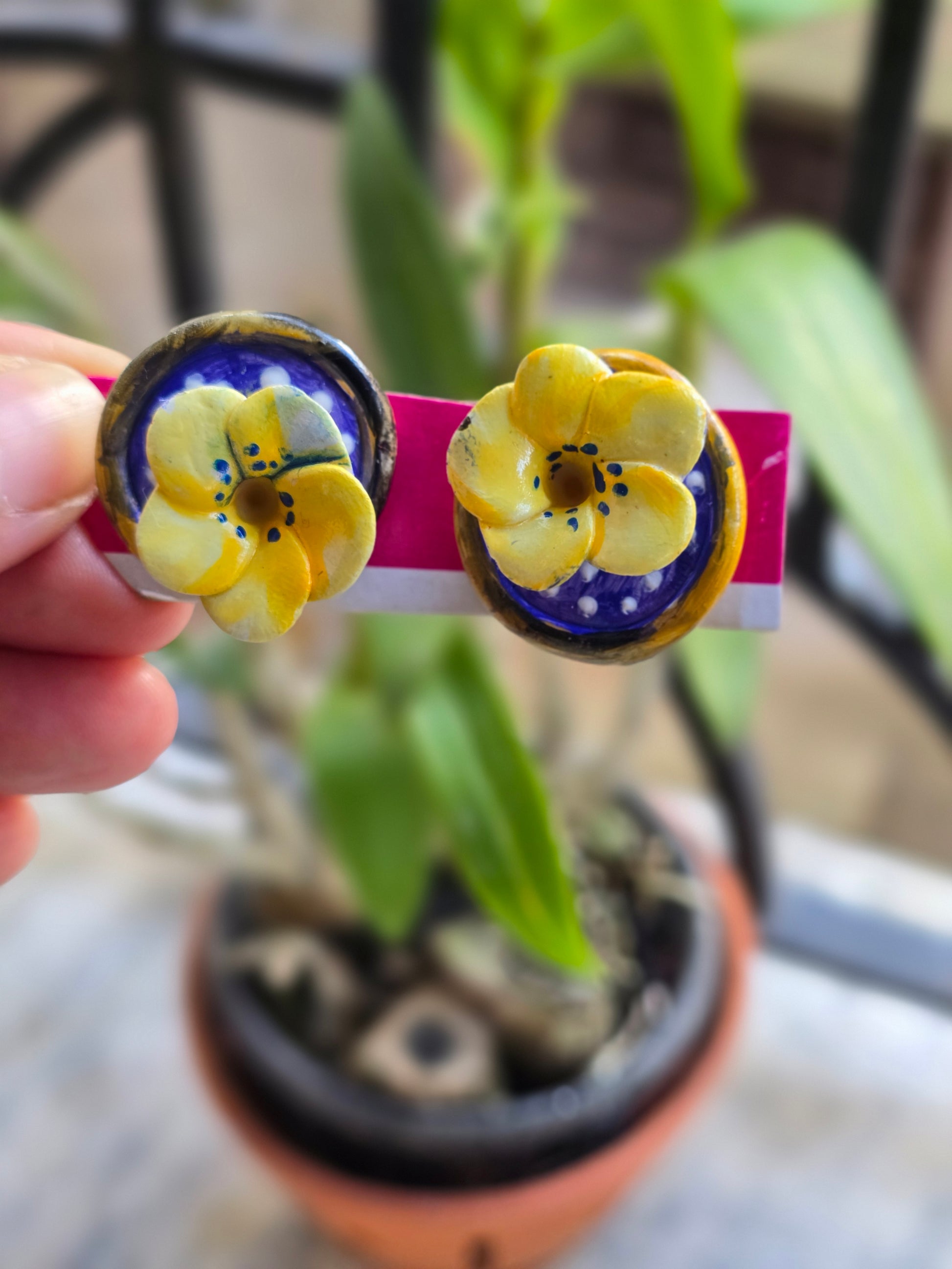 What you will get: one clay pendent with a pair of earrings [either yellow or pink]